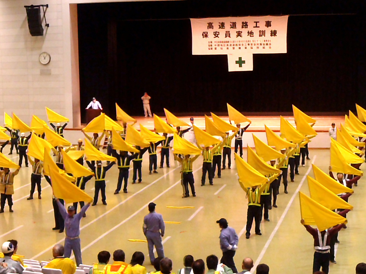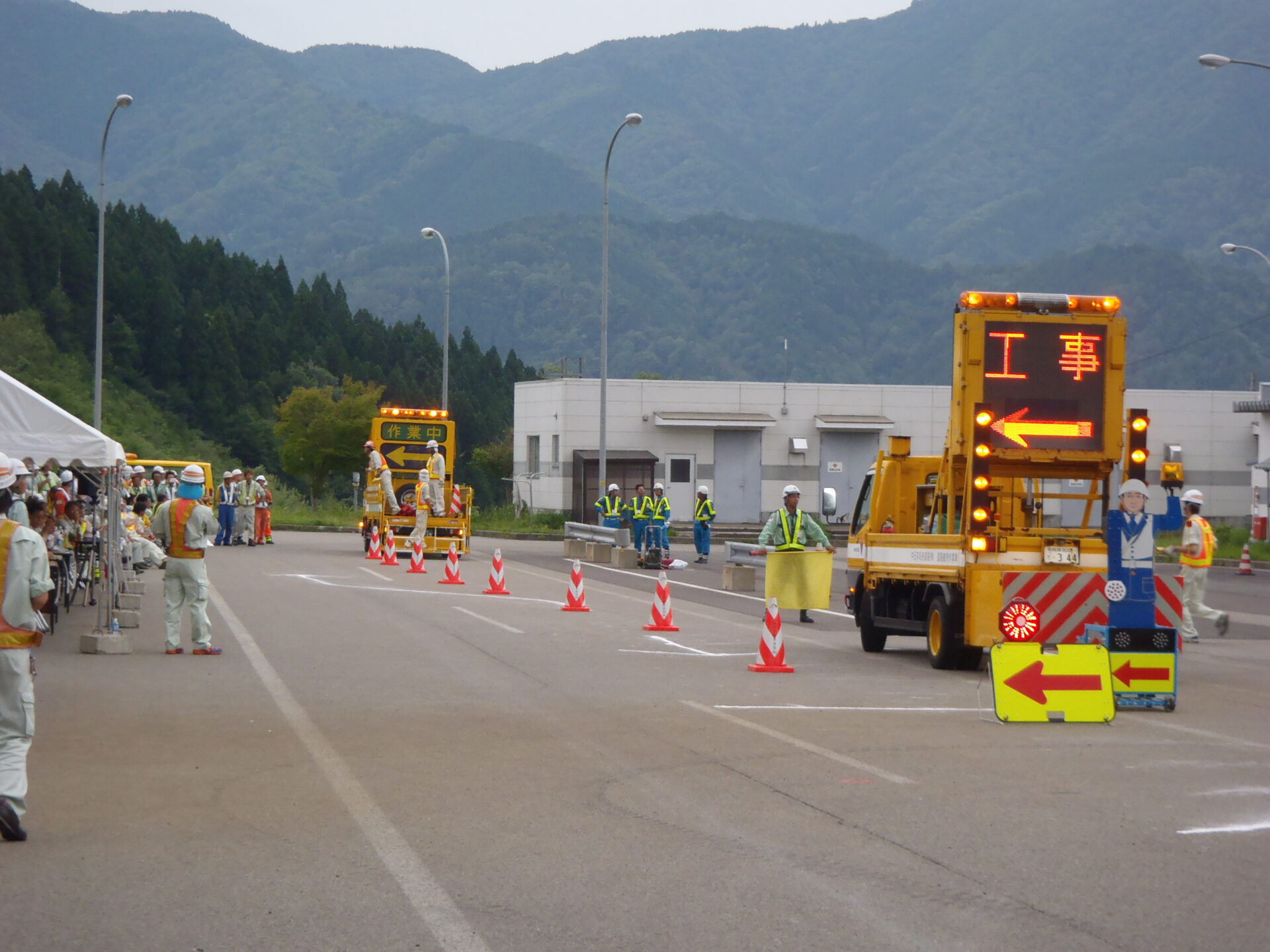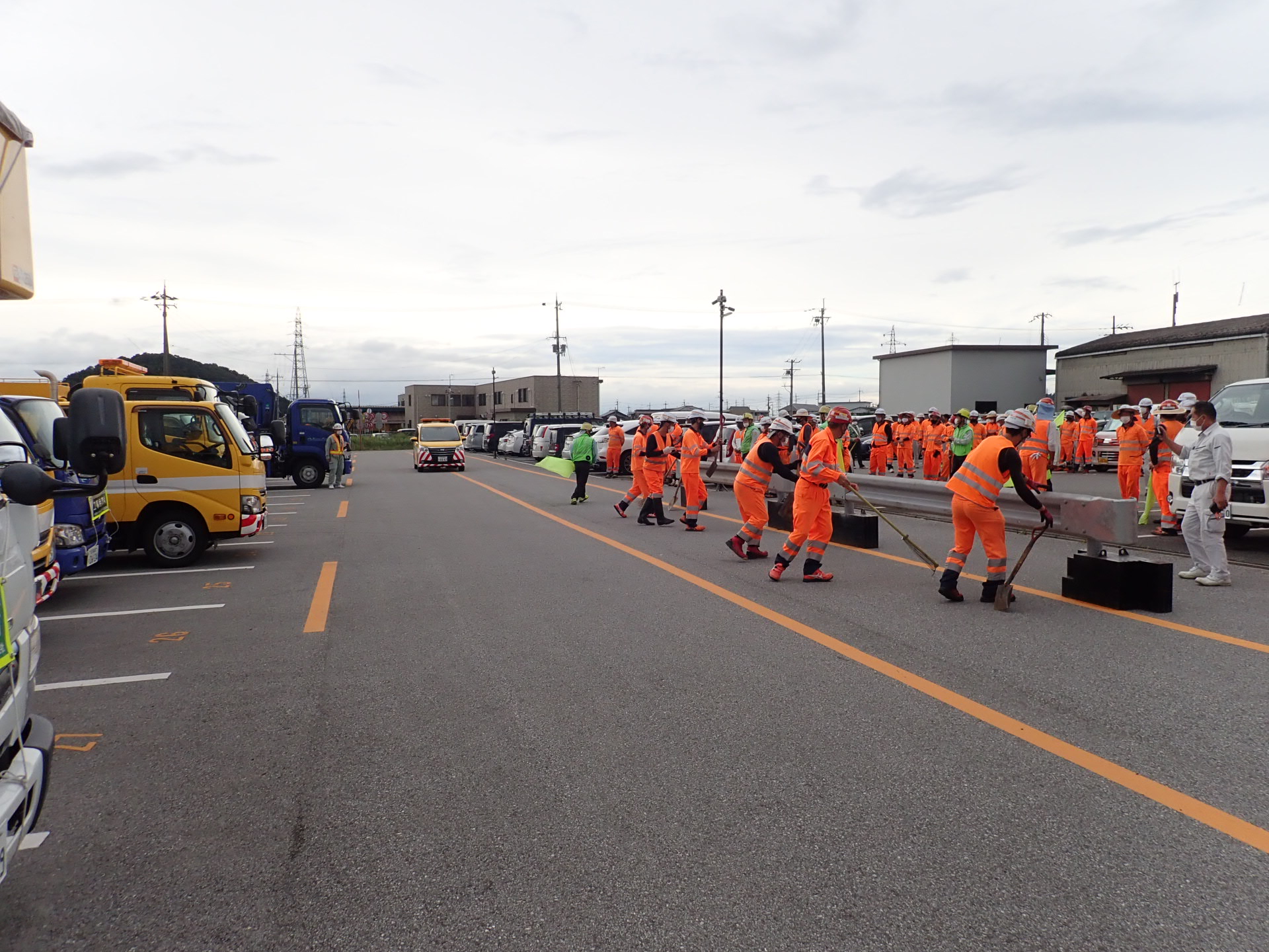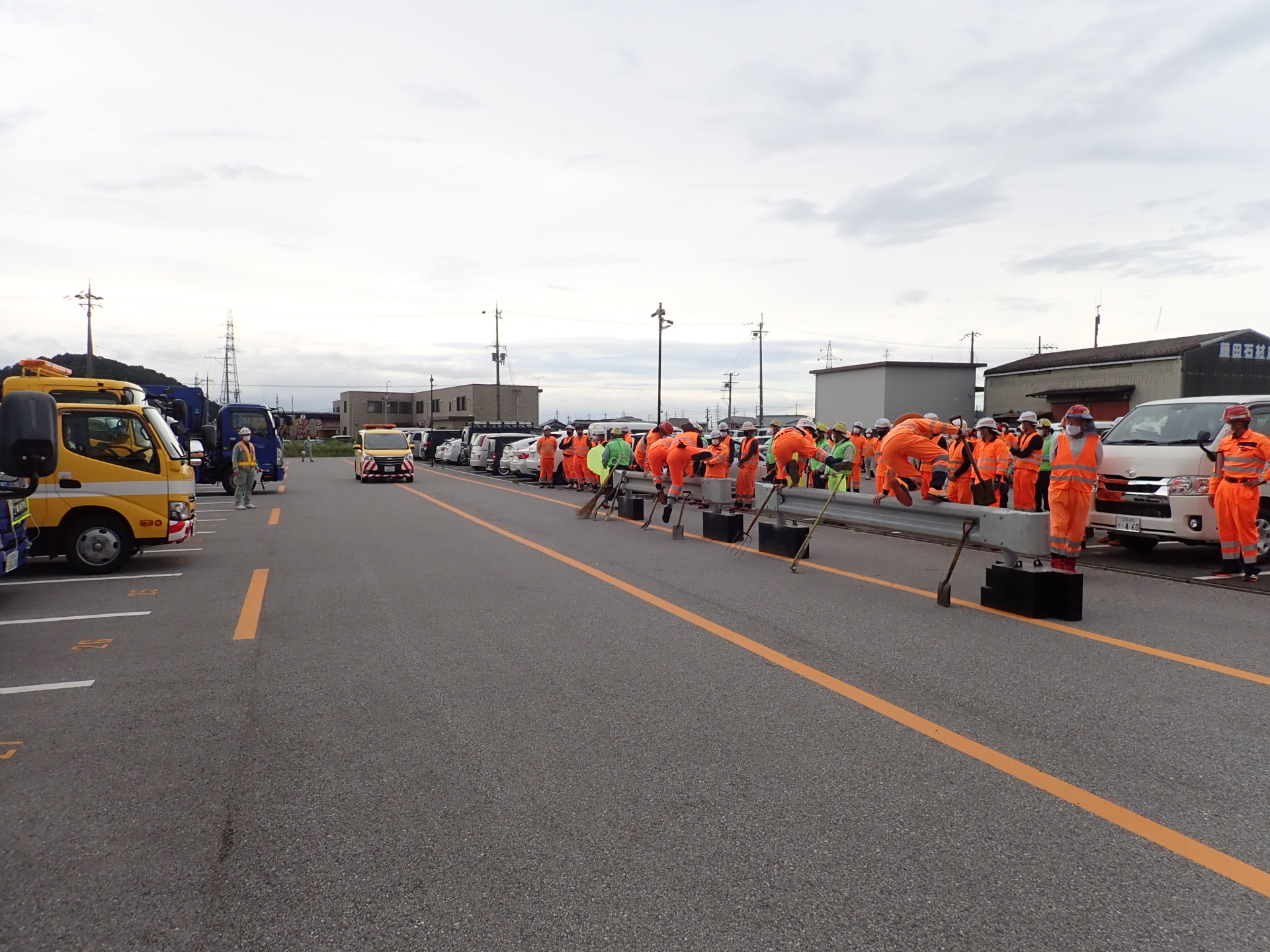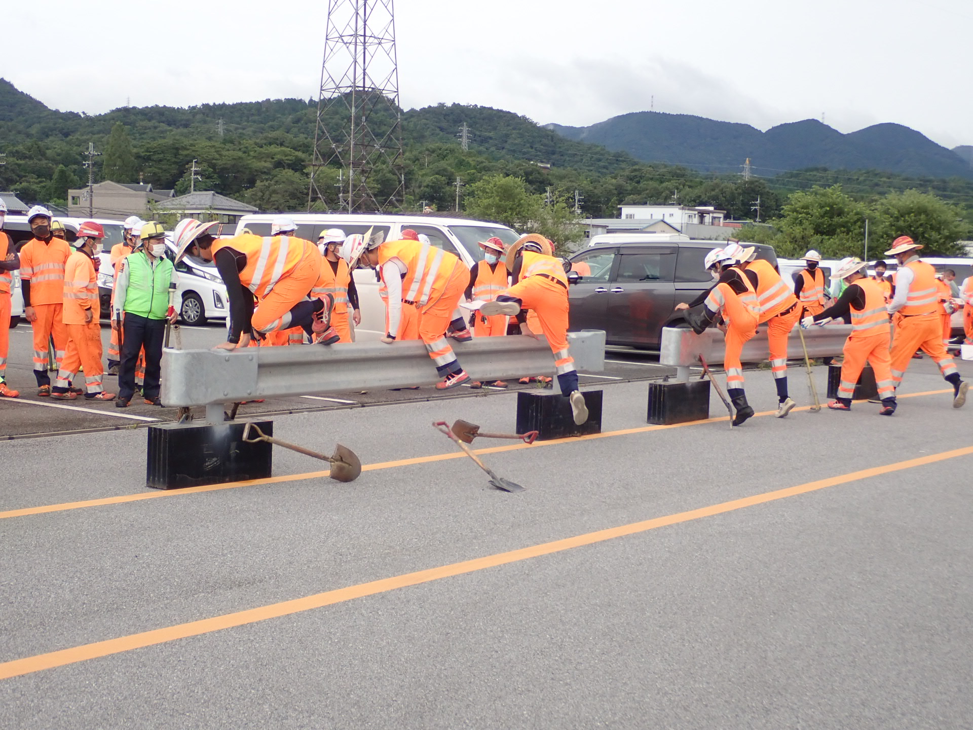 高速道路での作業中に一般車両が規制内に進入場合などにも備え訓練を行っております。