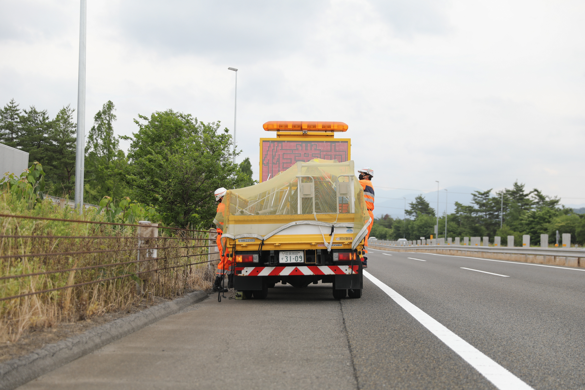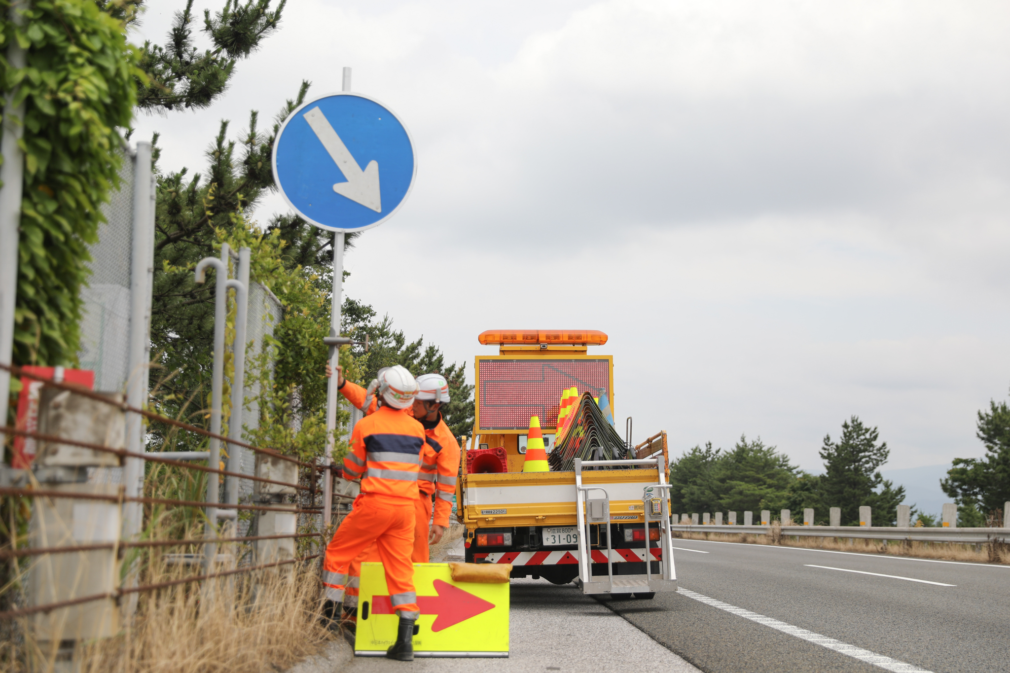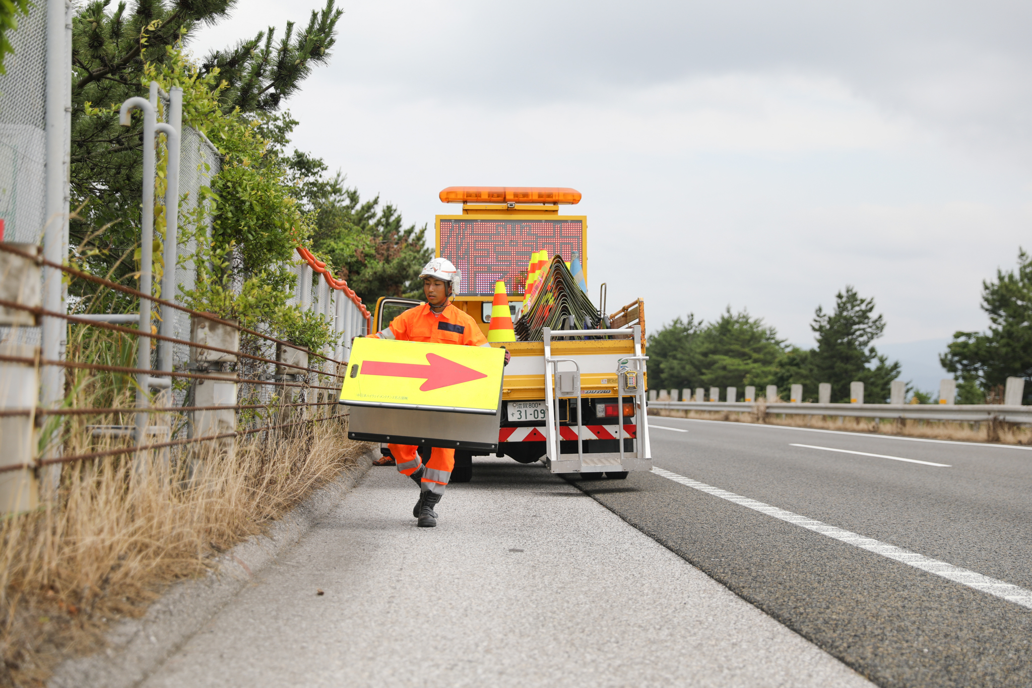 高速道路上で施工される各種工事に対応した車線規制作業を行っています。