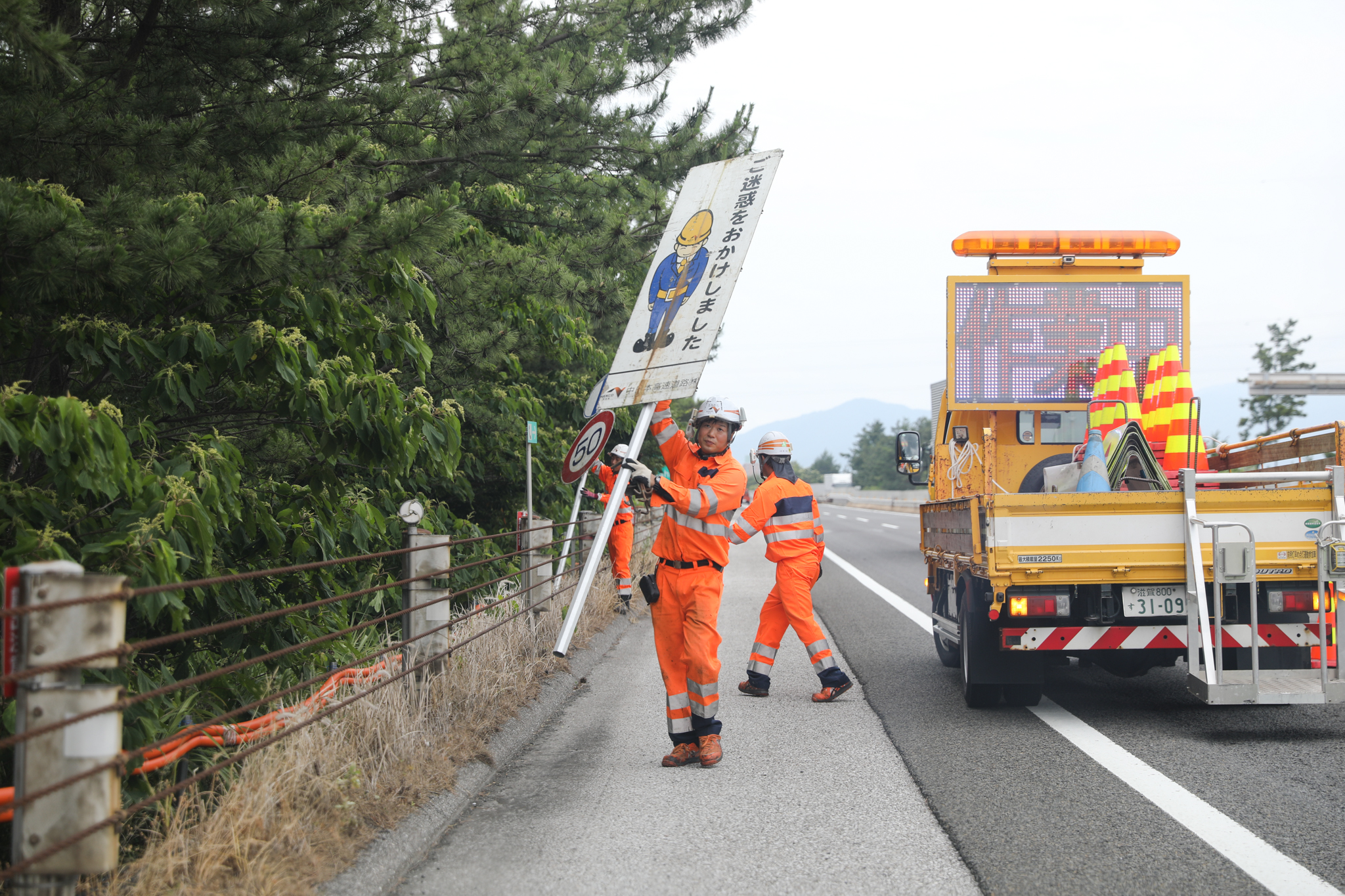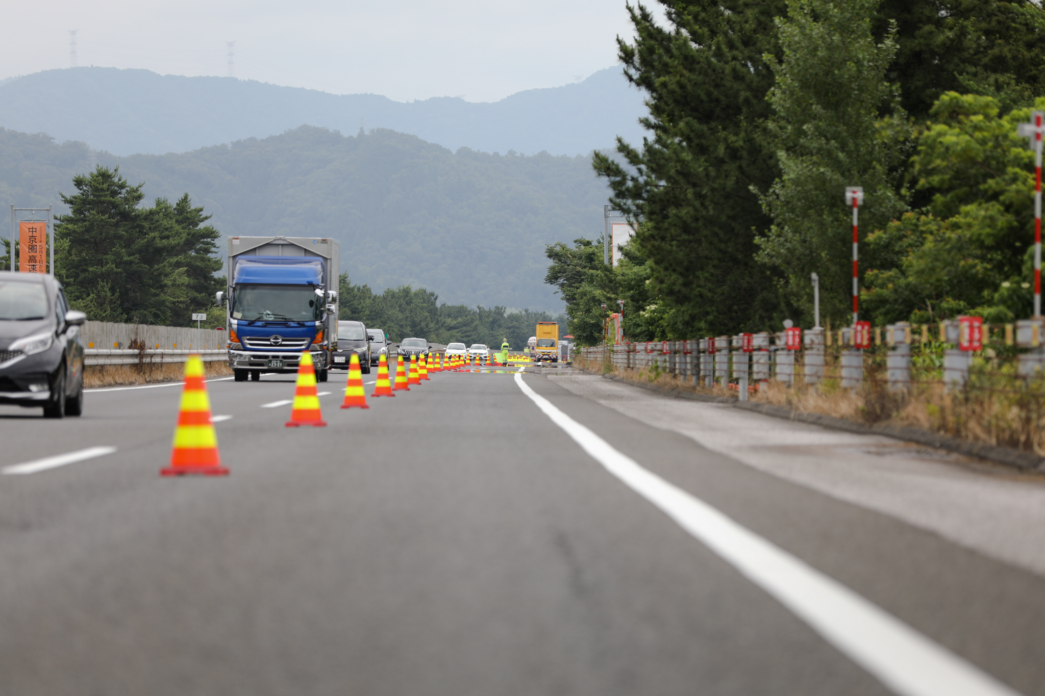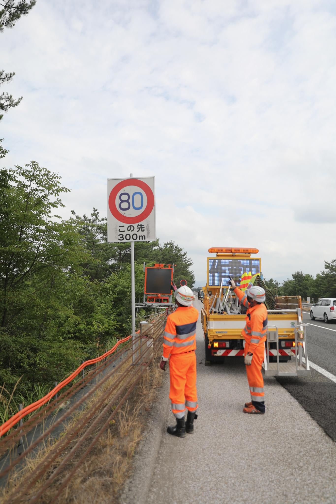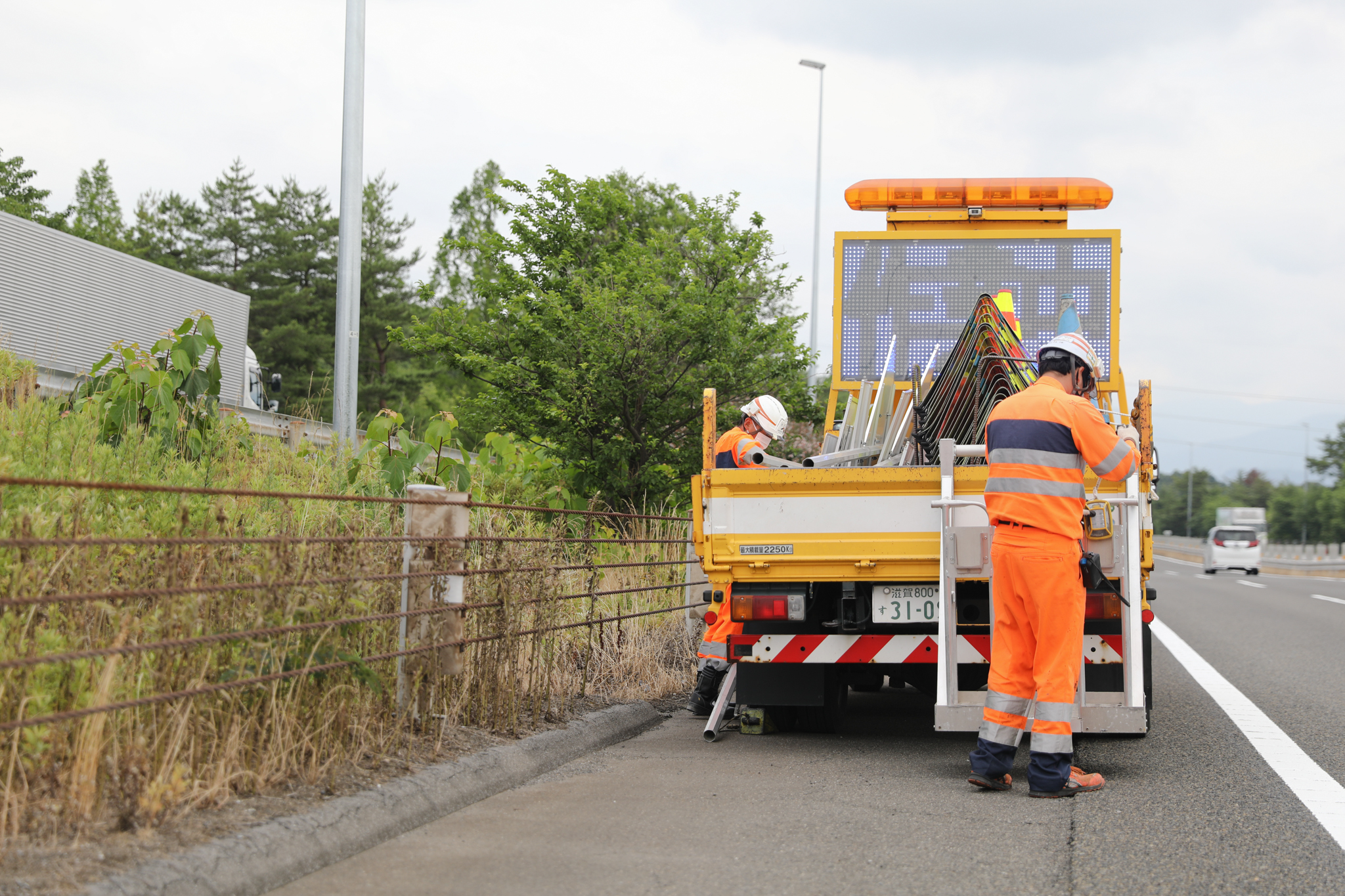 高速道路上で施工される各種工事に対応した車線規制作業を行っています。