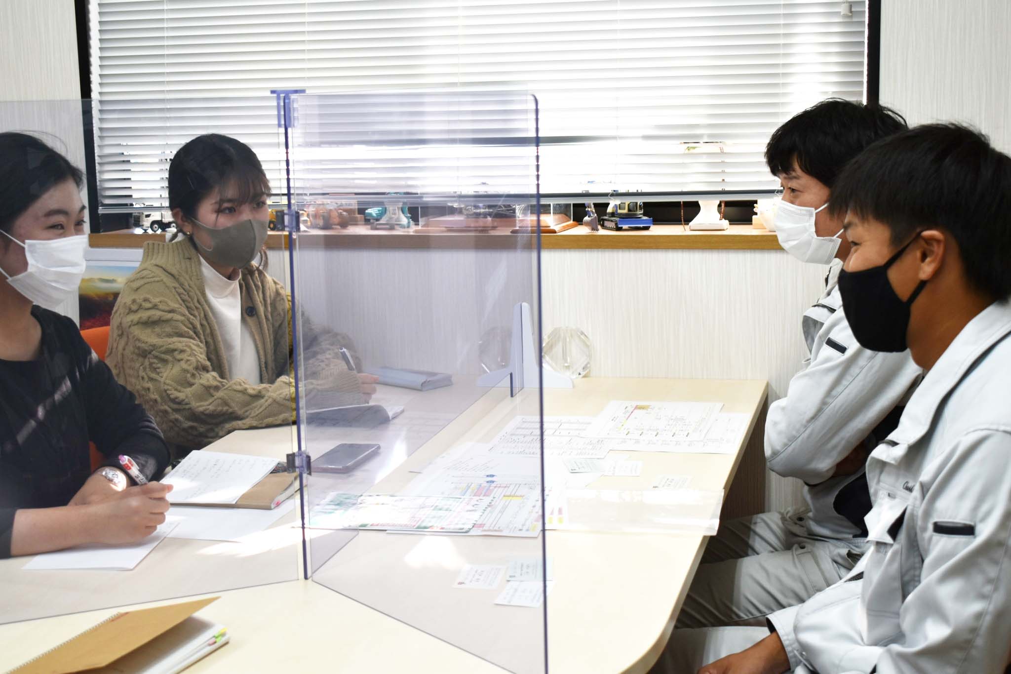 株式会社中栄での取材の様子 右奥:種村さん 右手前:安居さん 左:TTPメンバー
