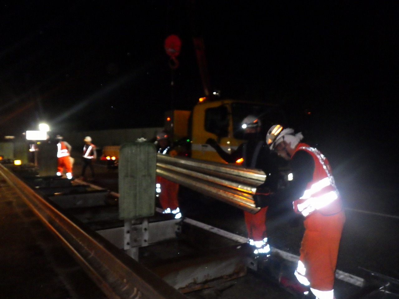私は現場サポート役なので、基本的には現場からのヘルプにあわせて出動していました。例えば、ガードレールの補修の手伝いですね。ガードレールの支柱を手作業で交換したんですが、支柱に使われるボルトがさびていると大変。久々だったから少し疲れました。