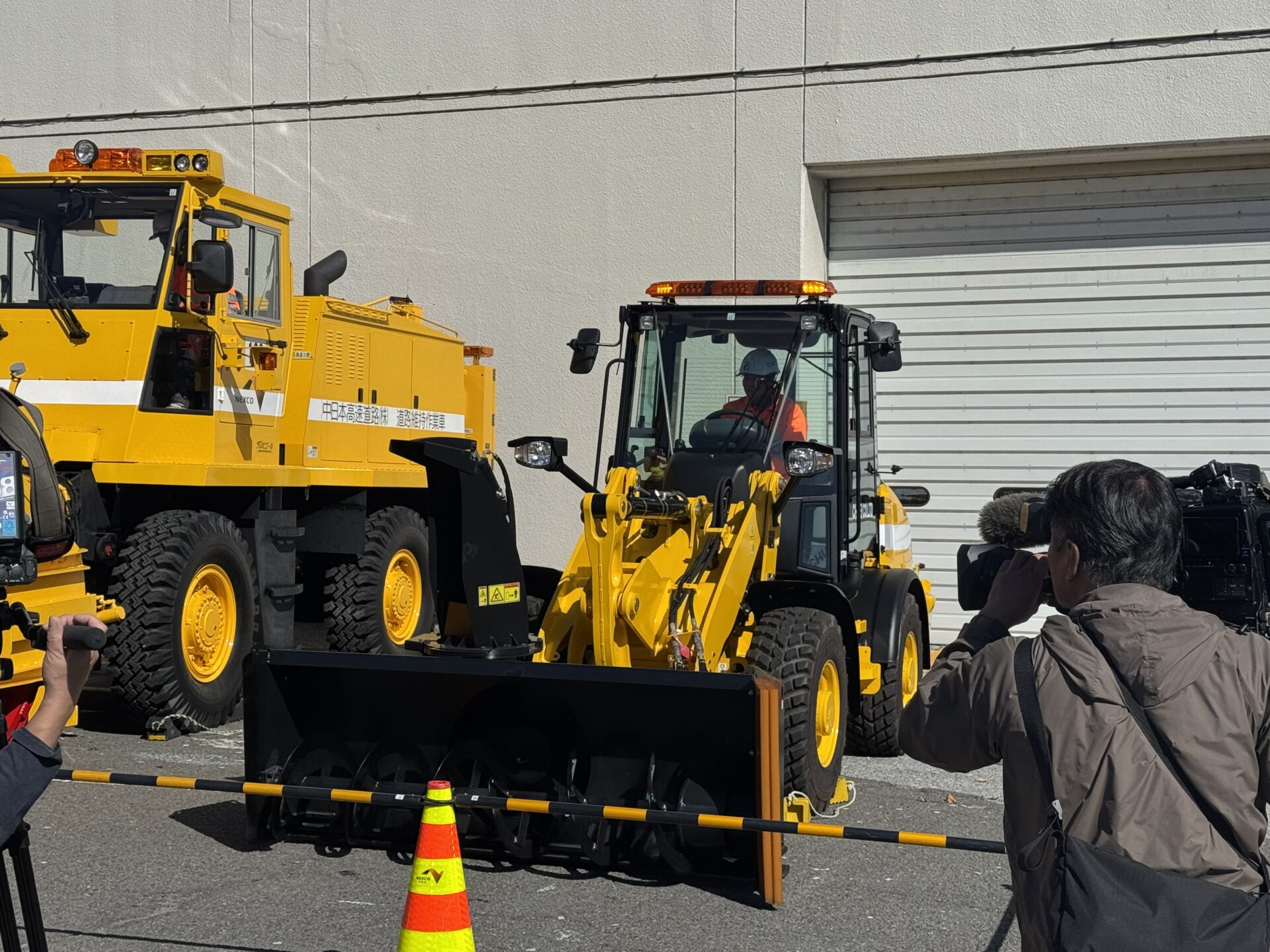 NEXCO中日本彦根保全・サービスセンター(彦根インターチェンジ内)彦根基地にて快晴の中、今年度の雪氷対策作業の安全祈願祭と雪氷車両出動式が行われました。