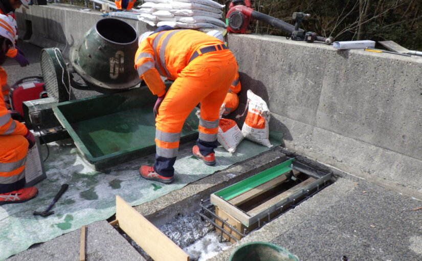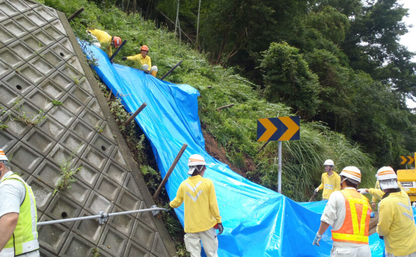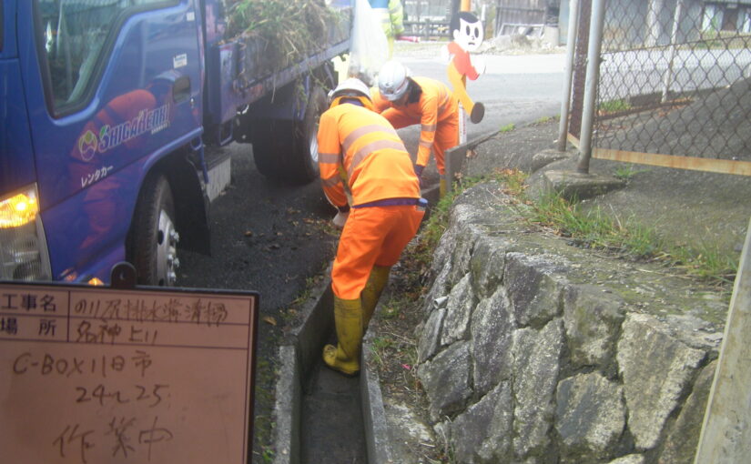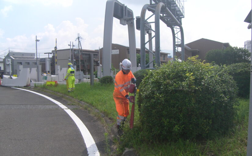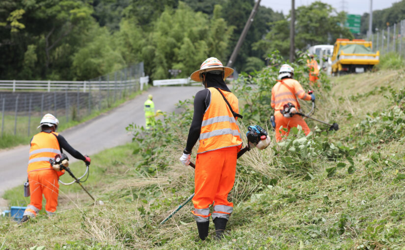 入社直後は高速道路の両端を走る排水溝の清掃、補修や斜面の草刈作業などから担当してもらいます。