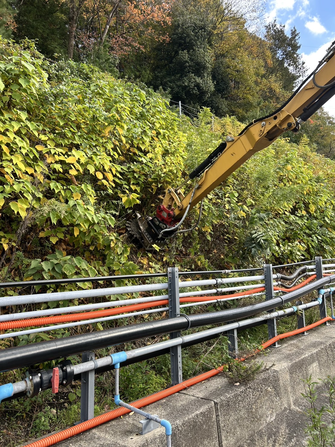 切土法面の伐採作業をしています。
